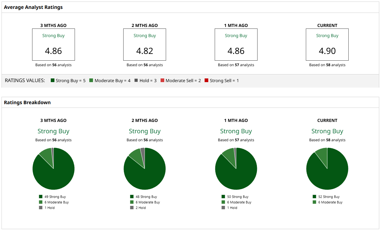 It is virtually unanimous—of the 58 analysts covering AMZN stock, 52 of them rate it as a “Strong Buy,” and the other six rate it as a “Moderate Buy.” And over the last three months, sentiment for Amazon stock has just increased.