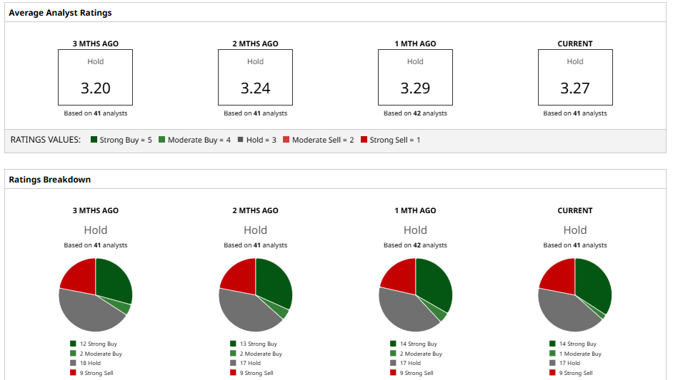 Wall Street is pretty split on Tesla right now. Morgan Stanley in early December moved TSLA from a “Buy” to a “Hold” but nudged its price target up to about $425 from $410. Their analyst, Andrew Percoco, praised Tesla’s FSD and robotics progress but trimmed delivery forecasts for 2026 by roughly 10% because EV demand looks softer than expected. The $425 target only signals a modest downside from here, so MS is basically saying progress exists, but the market already prices a lot of it in.