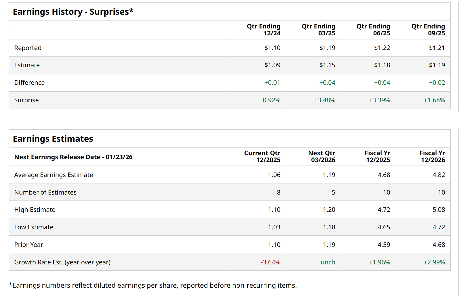 Valued at a market cap of $167.9 billion, Verizon Communications Inc. (VZ) is a telecommunications company that provides wireless, broadband, and wireline communication services to consumers, businesses, and government clients. The New York-based company is expected to announce its fiscal Q4 earnings for 2025 before the market opens on Friday, Jan. 30.