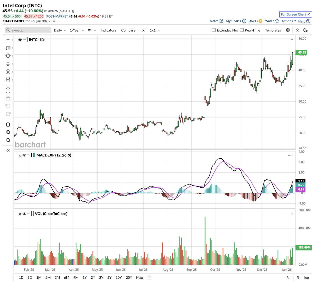 The rally extends a remarkable turnaround that has seen INTC stock more than double since the federal government injected $8.9 billion into the chipmaker last August through the CHIPS and Science Act, acquiring a 10% stake at $20.47 per share.