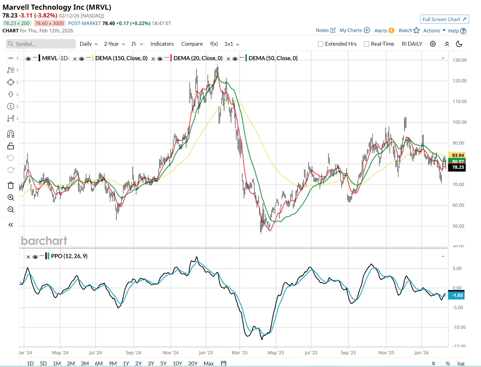 Marvell (MRVL): Any stock with a 10-month range from $120 to $50 a share is ripe for leveraged ETFs, right? But only if you know your limits.