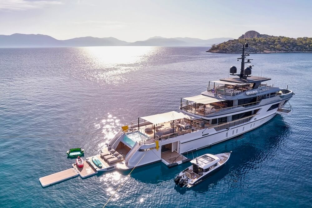 MOKA is a 164 ft Sanlorenzo tri-deck yacht with a stunning aft-deck infinity pool – complete with a contraflow system. Her beach club is well-designed for relaxing right at the water’s edge, and she carries a strong selection of toys geared toward active guests. The yacht’s pedigree and refit, combined with a capable crew, make her ideal for more high-action charters.