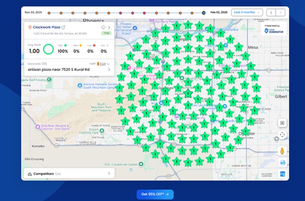 Instead of tracking rankings, listings, and analytics in separate systems, the platform consolidates these data points into a single operational view, helping teams evaluate where businesses appear and how that visibility changes over time.