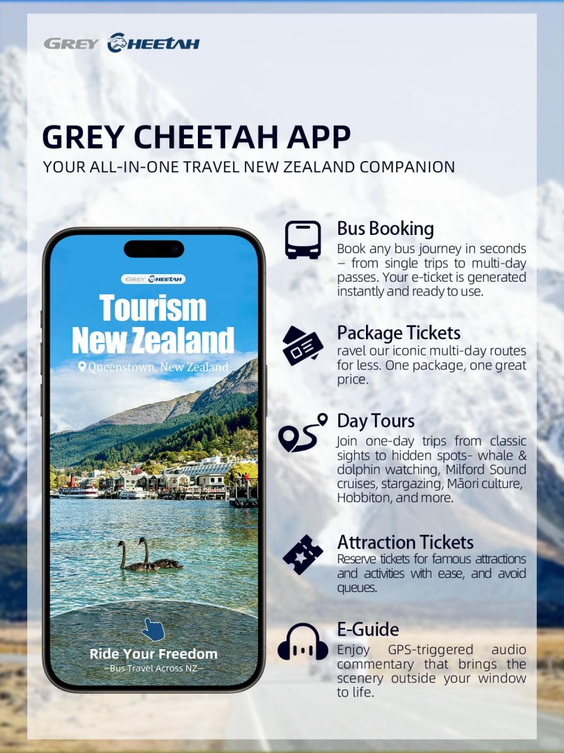 As global tourism returns to New Zealand, many international visitors face the challenge of navigating right-hand traffic, winding mountain roads, and long-distance fatigue. Grey Cheetah addresses this gap by combining a self-operated intercity bus network with a cutting-edge digital ecosystem. This "All-in-One" solution seamlessly integrates transport, tours, and technology, offering a stress-free alternative to car rentals.