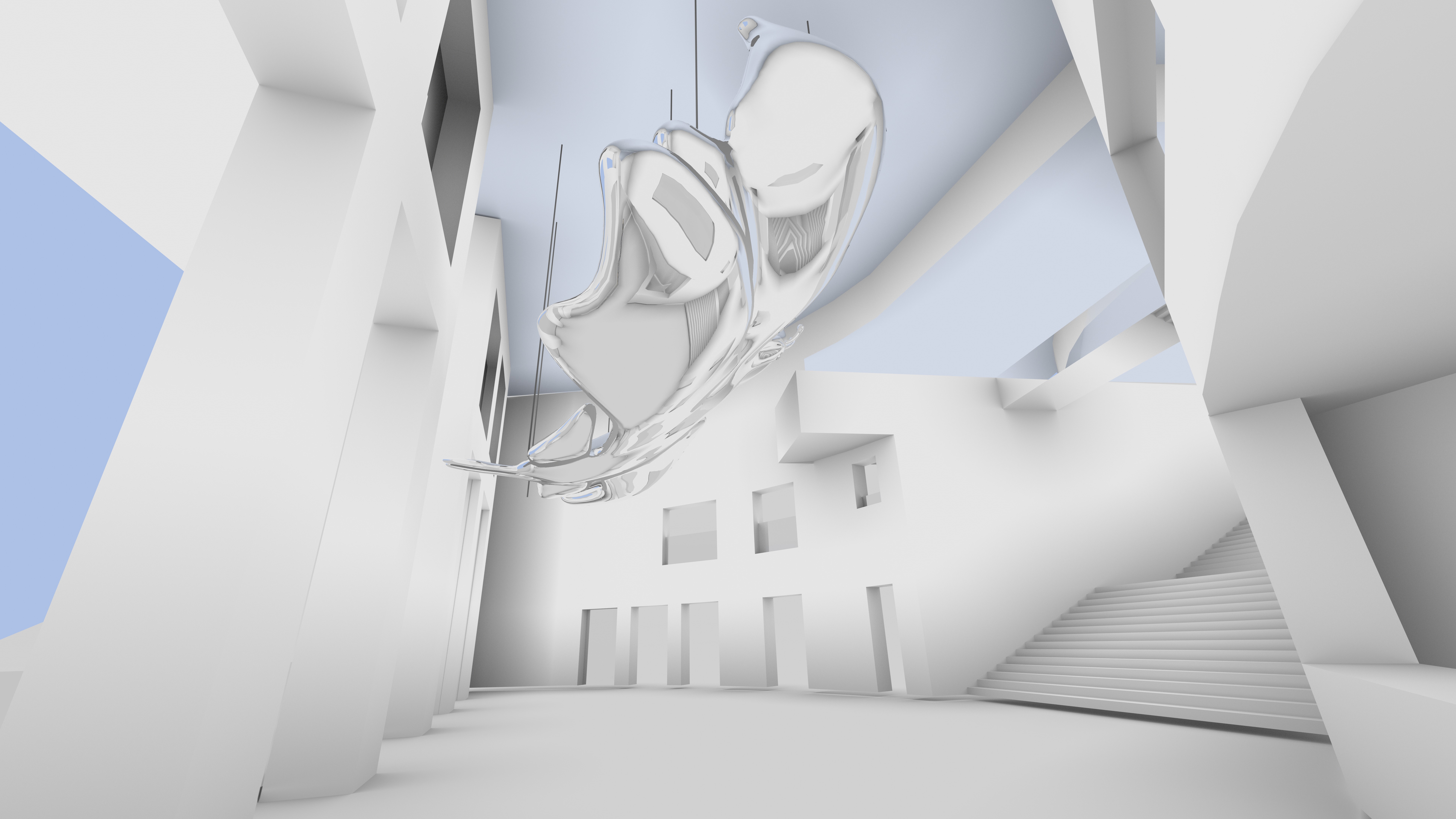 As part of their conceptual project to rename our planet "Ocean" and unite humanity, Earth Angel represents a celestial visitor to Ocean, symbolizing vibrational harmony. FriendsWithYou Studio Manager Julie Machado, and Manager Jordan Bratman explains, “Earth Angel, a creature from beyond the heavens, visits the planet Ocean. This entity is the embodiment of vibrational unity in all things, inside the infinite universe(s), this phenomena made visible in this form, Earth Angel. Its mirror like surface symbolizes the universal totality present in all things, as all matter is equal and ever changing, we see our own selves in this mythological character distorted, transformed, and anew.”