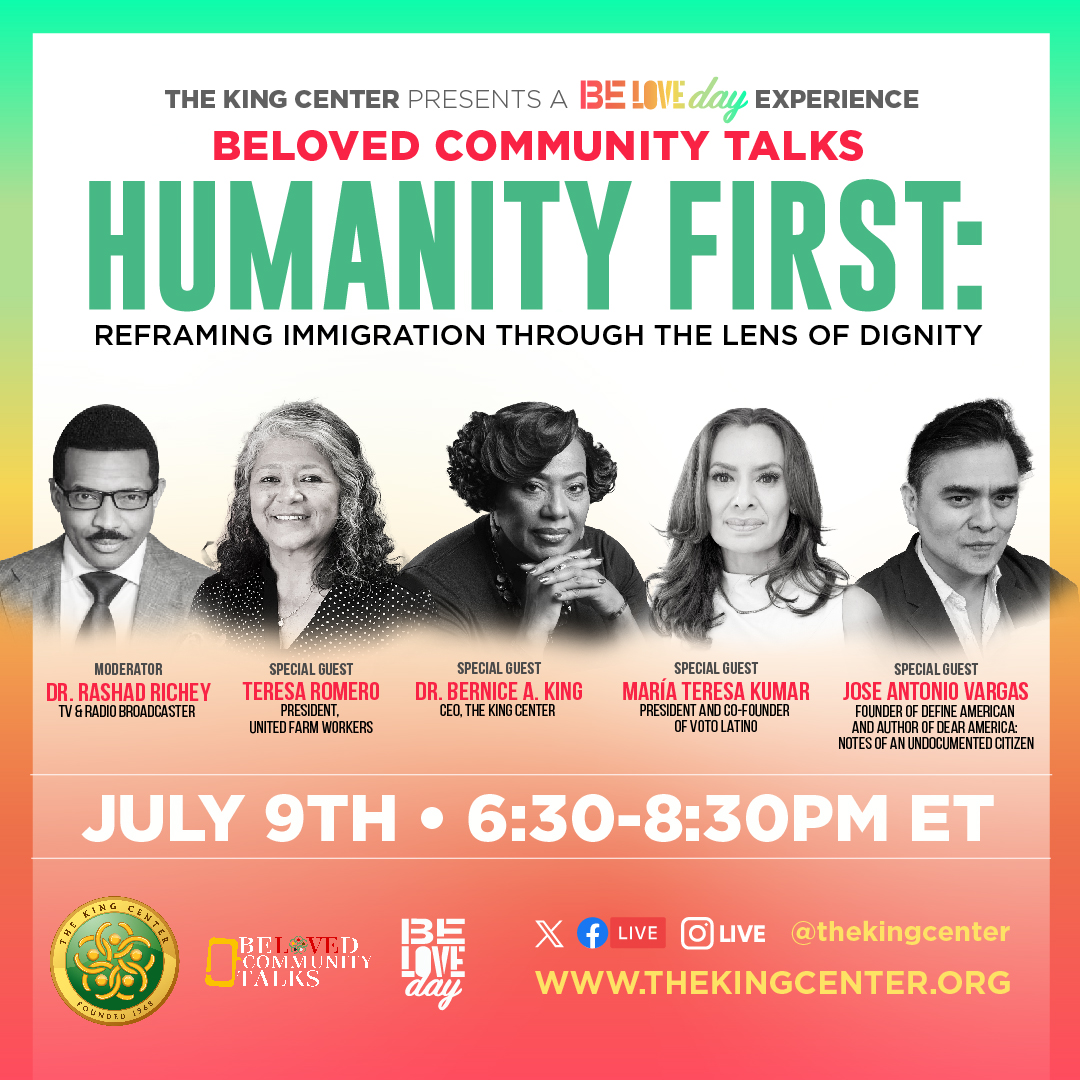 Together, these distinguished voices will explore the role of compassion and dignity in shaping humane immigration policies, offering deep reflections on what it truly means to BE LOVE in response to those seeking refuge, opportunity, and a better life. The panel discussion will stream live on The King Center’s social media platforms from 6:30 PM to 8:30 PM ET.