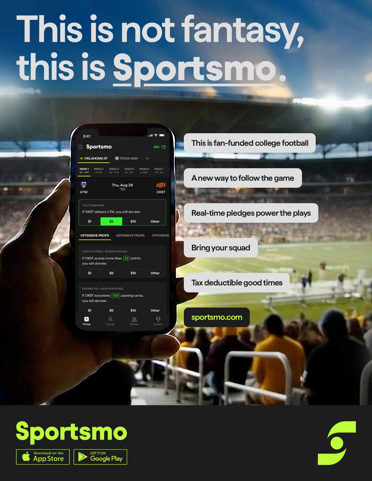Launched in time for the new season beginning in two weeks, Sportsmo is the first app to turn live college football action into real-time, fan-funded support for their favorite teams. The app's debut comes on the heels of a landmark federal NIL ruling and amidst seeminly now daily news of how schools are racing to adapt to new challenges they face to remain competitive on and off the field.