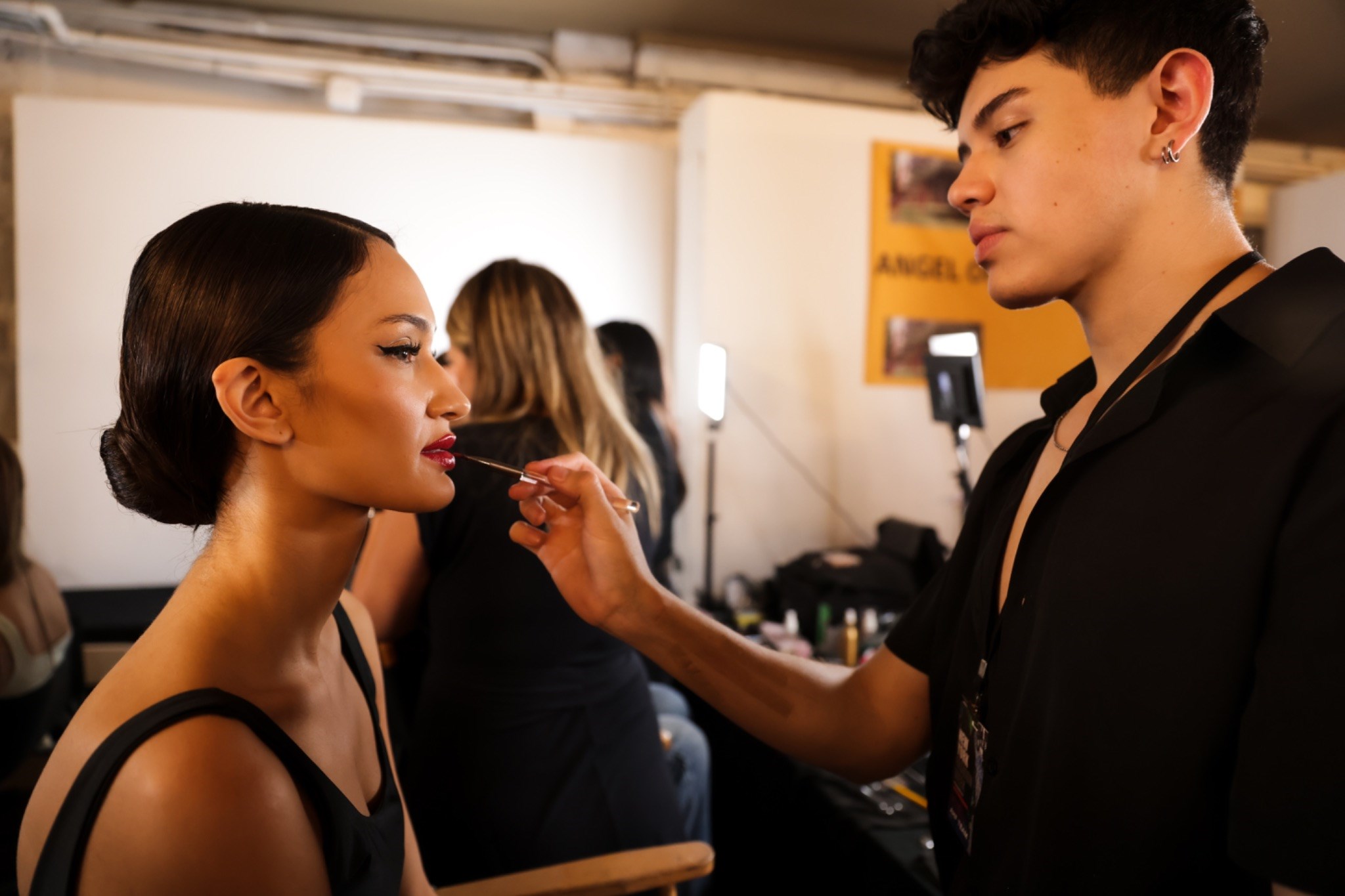 Models get ready backstage courtesy of Billion Dollar Beauty, Japonesque, and UNITE