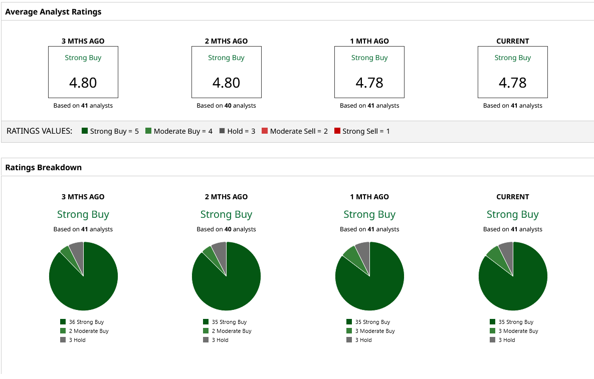 Of the 41 analysts who cover AVGO stock on Wall Street, 35 have a “Strong Buy” rating. This is hardly surprising considering the amount of investment expected to be poured into AI chips in the coming years. On Jan. 9, Mizuho raised its target price on the stock from $450 to $480. Even when insiders are selling, analysts continue to stay optimistic, which should give a good idea of how strong the sentiments are with AVGO.