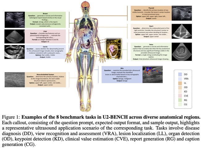 To address these challenges, U2-BENCH has been introduced as the first comprehensive benchmark designed to evaluate LVLM capabilities in the ultrasound domain, covering four major task dimensions: classification, detection, regression, and text generation.